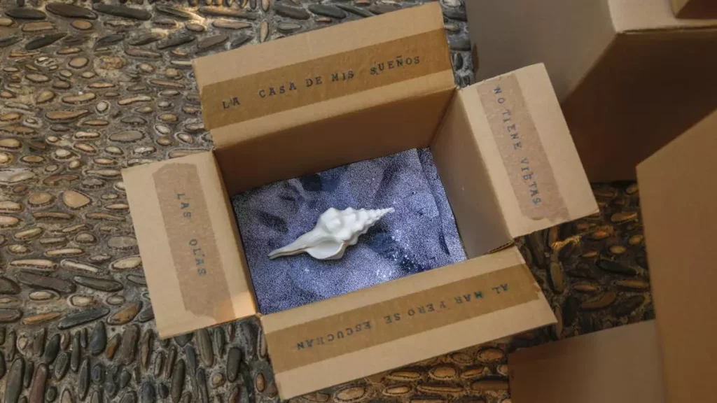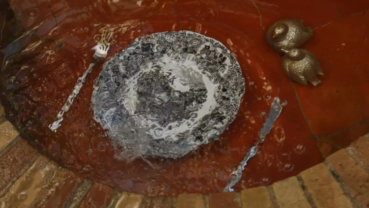 La artista invitada Claudia Frau intervino el Patio de la Cancela del Palacio de Viana con una pieza que pone en el centro el trabajo de mantenimiento de la vida. Mediante el uso de objetos cotidianos —como guantes de goma o vajillas sumergidas—, la instalación dialoga con el entorno monumental para reivindicar los cuidados invisibles, históricamente asignados a la mujer, como el verdadero andamiaje que sostiene la convivencia.